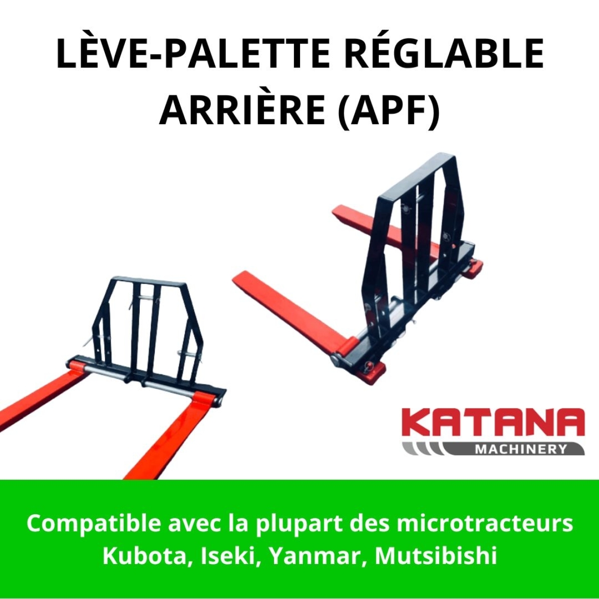 Les outils Katana sont compatibles avec la plupart des microtracteurs Kubota, Yanmar, Iseki et Mitsubishi